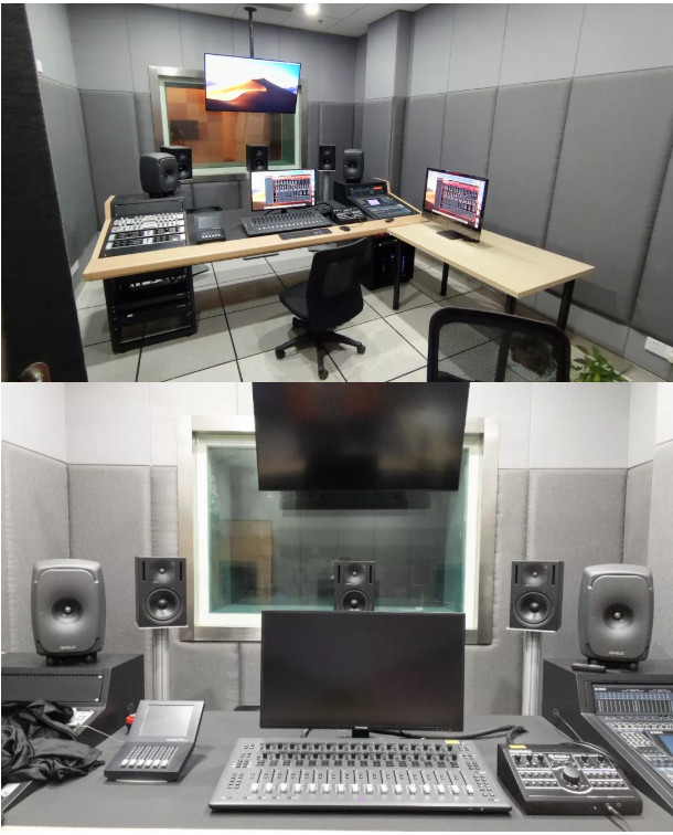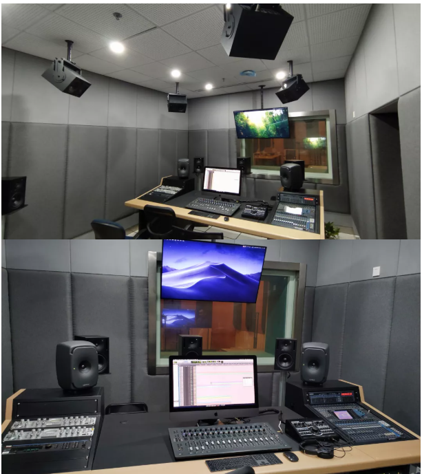 本項(xiàng)目包含了兩間錄音棚(簡稱為棚1與棚2),其中棚1為5.1.4的監(jiān)聽配置,支持杜比全景聲制作;棚2為5.1的監(jiān)聽配置。