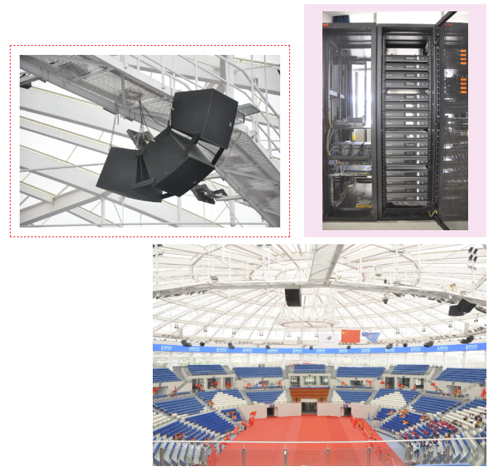 主場館內,EV和DYNACORD聯(lián)手呈現(xiàn)了一如既往的良好音質:EVH-1152D作為混響聲場的理想選擇,以其高解析力和均衡的角度覆蓋控制,為場地提供了優(yōu)異的語言清晰度和醇美音質,讓在場的每位觀眾和運動員都能及時接收到信息,在一些應用場景中對于音樂播放也顯得游刃有余,再加上DYNACORD的IPX功率放大器的功率支持和MXE5 混音矩陣的調控,整個擴聲系統(tǒng)表現(xiàn)令人折服。