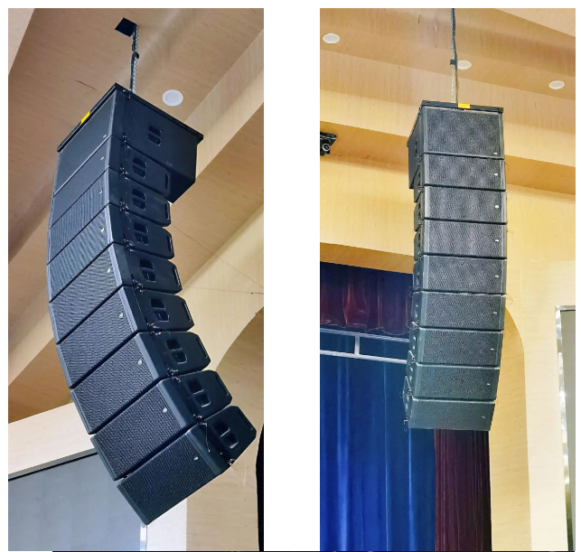 左中右主擴系統采用Mission C-210X線陣音箱作為遠場及近場主擴聲,覆蓋全場。采用C-210SUBX低音音箱作為左右聲道低頻線陣,提供清晰和強勁的低頻。此外,還采用了MIZ-218SUB超低音音箱隱藏安裝于舞臺臺口兩側,帶來更多低頻擴展。