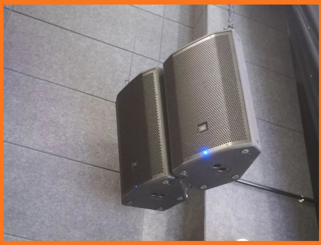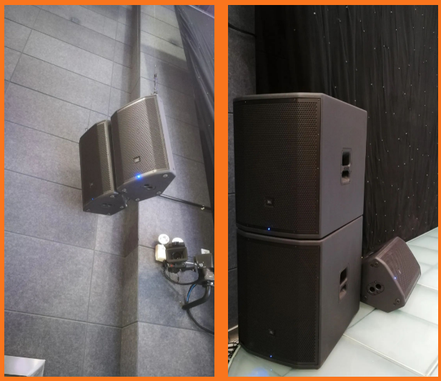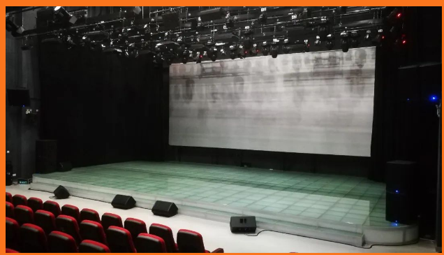 川師大綜合實驗樓小劇場舞臺上的主擴聲系統由美國JBL PRX800系列中的PRX815W有源15寸兩分頻以及PRX818XLFW有源18寸超低頻擔任,PRX 812W有源12寸兩分頻作為舞臺監聽以及前補聲。
