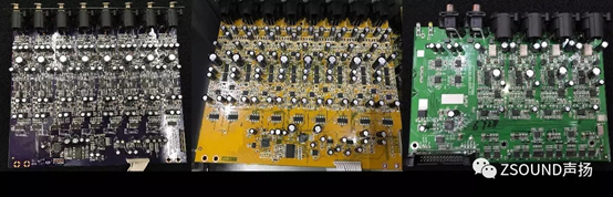 通過(guò)上述測(cè)試對(duì)比,我們可以基本判斷,在各項(xiàng)性能上,C的指標(biāo)最高,A其次,B型號(hào)最低。這些指標(biāo)對(duì)用戶的意義是什么呢?——是音質(zhì)的差別,而這背后是電路設(shè)計(jì)和電路元器件的選用上差別。對(duì)于數(shù)字調(diào)音臺(tái)來(lái)說(shuō),話放的電路設(shè)計(jì)和元器件選用,A/D、D/A轉(zhuǎn)換芯片,這些很大程度上決定了其性能。入門級(jí)的調(diào)音臺(tái)為了實(shí)現(xiàn)大眾化的價(jià)格,往往不得不在音質(zhì)和成本之間折中。我們分別將手頭的3個(gè)型號(hào)的調(diào)音臺(tái)的進(jìn)行拆機(jī),分別看看其電路設(shè)計(jì)和元器件用料。