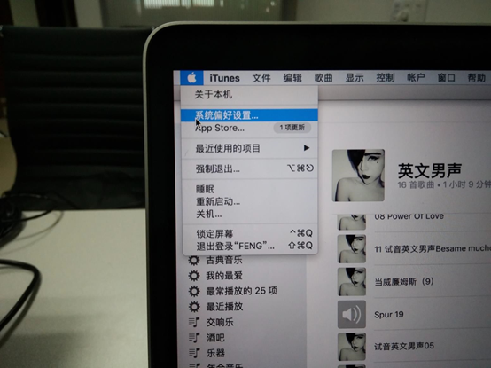 圖16:連接完成后,點(diǎn)擊屏幕左上角??標(biāo)志,選擇系統(tǒng)偏好設(shè)置,點(diǎn)擊進(jìn)入系統(tǒng)偏好設(shè)置界面。