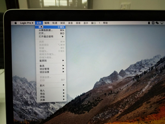 圖22:進(jìn)入logic pro 界面后點(diǎn)擊文件選項(xiàng),選擇新建一個(gè)項(xiàng)目。
