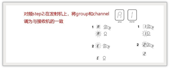 2、打開對應發射機的電源,將組和頻道更改為與接收機匹配。