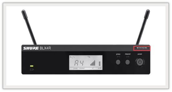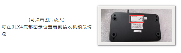 單通道接收機BLX4R,頻段信息可以在面板上看到,標識位于右上角,如圖所示