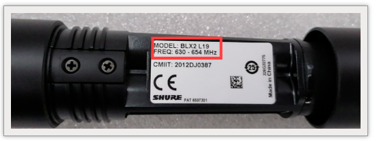 位于手持話筒發射機電池倉背部,如圖所示