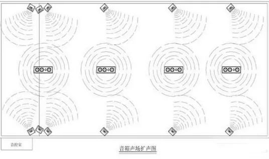 一般說來,狹長廳堂的擴聲,一定要音箱的擴聲區域盡量沿長邊展開;空間較高的擴聲場合,要盡量將音箱位置抬高,最好是略微向后場傾斜;如果是在空間和面積都較大的地方進行擴聲,就應該考慮將音箱集中懸掛成圓弧形形成均勻的聲音擴散。