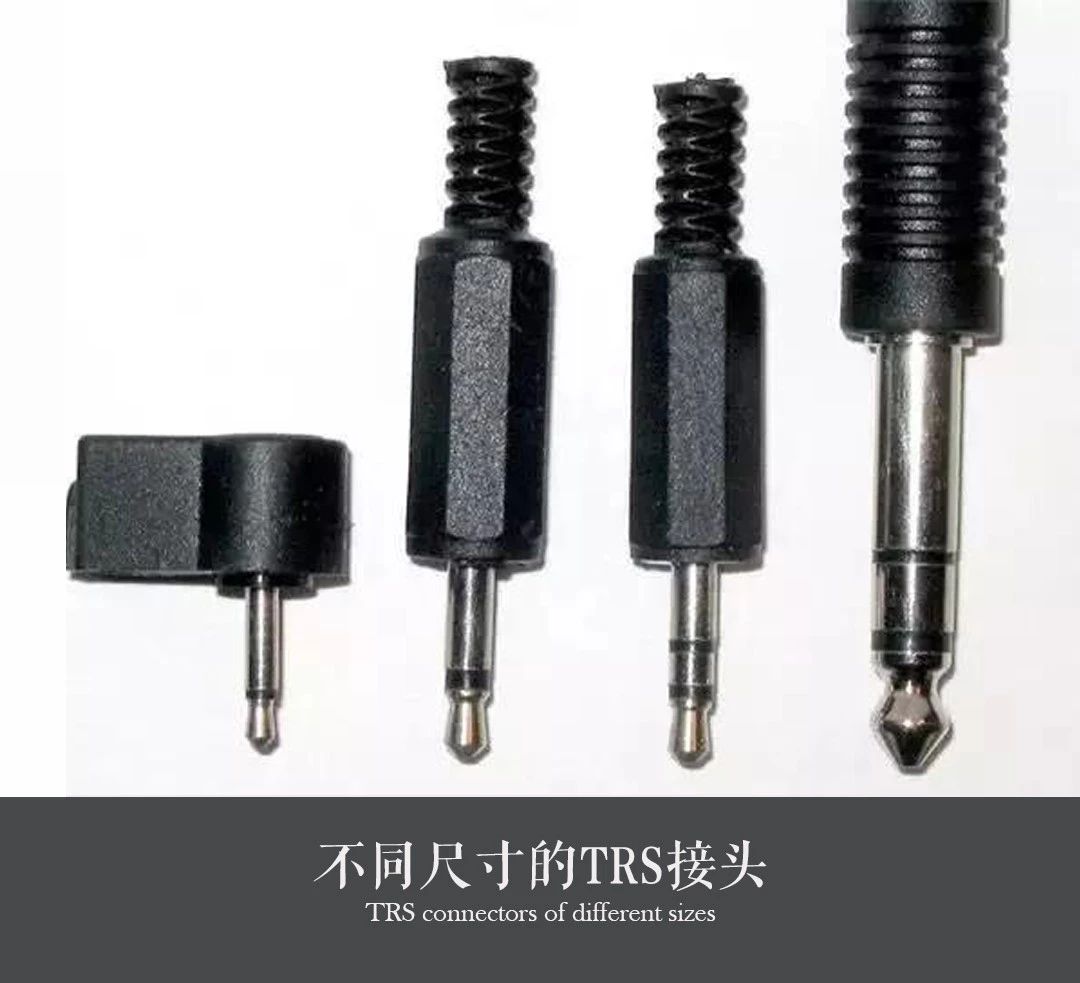 TRS的含義是Tip(signal)、Ring(signal)、Sleeve(ground),分別代表了這種接頭的3個觸點,我們看到的就是被兩段絕緣材料隔離開的三段金屬柱。