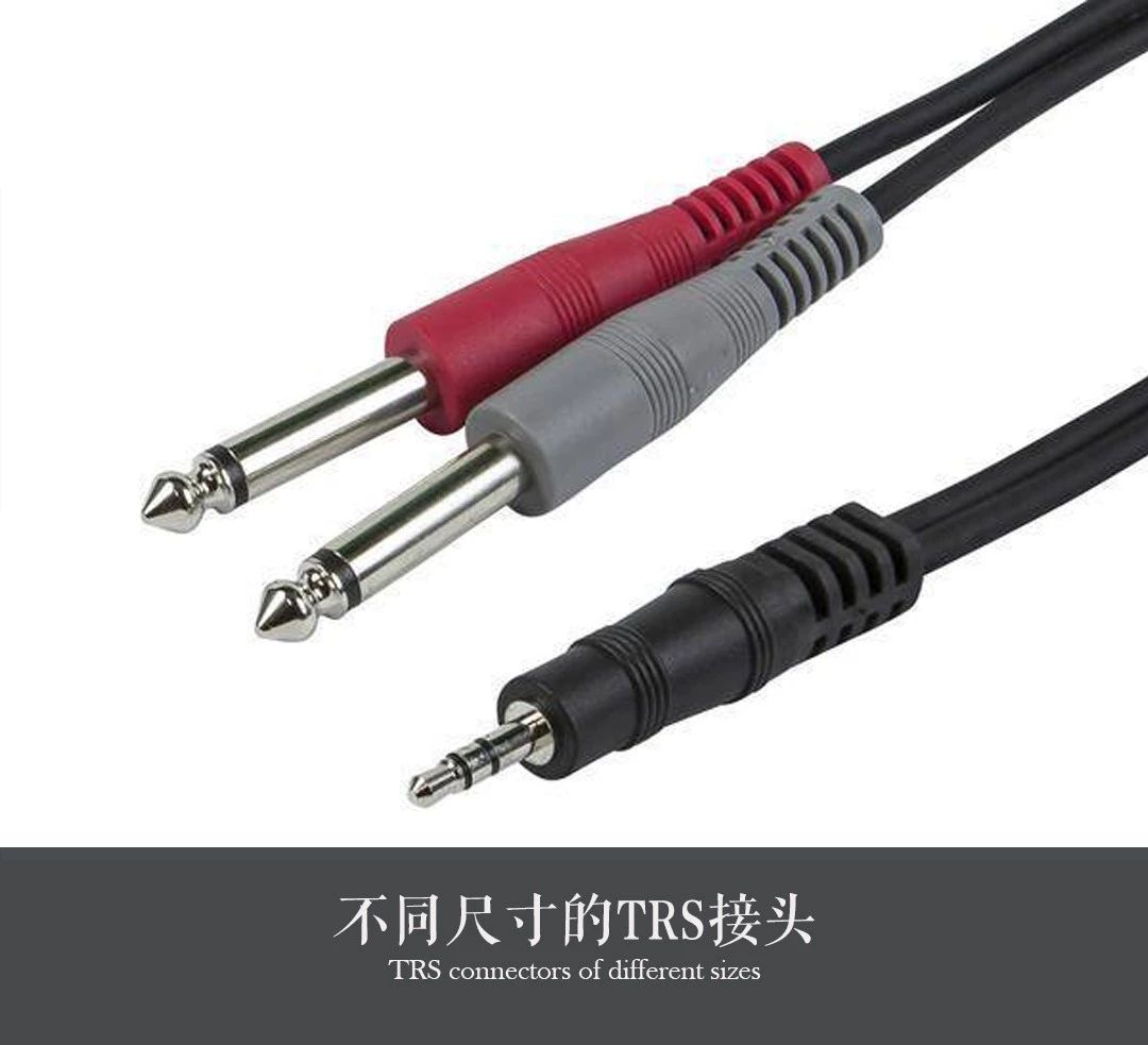其實,日常生活中我們見得最多的就是TRS接口,它的接頭外觀是圓柱體形狀,通常有三種尺寸:1/4"(6.3mm)、1/8"(3.5mm)、3/32"(2.5mm)。