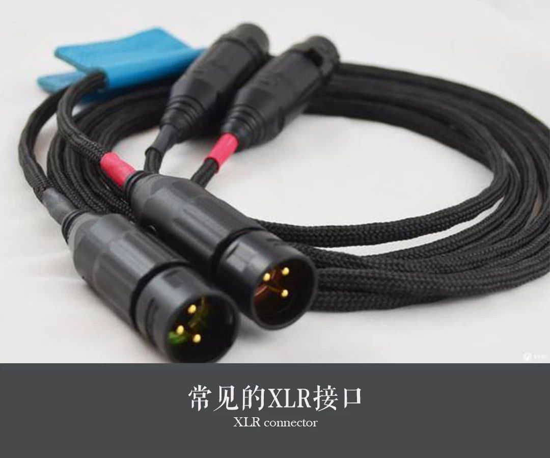 XLR接口,俗稱“卡農口”。我們通常見到的XLR插頭是3腳的,當然也有2腳、4腳、5腳、6腳的,比如在一些高檔耳機線上,我們也會看到四芯XLR平衡接頭。XLR接口可以用來傳輸音頻平衡信號和非平衡信號,但光從接口看,我們是看不出來它到底傳輸的是哪種信號。