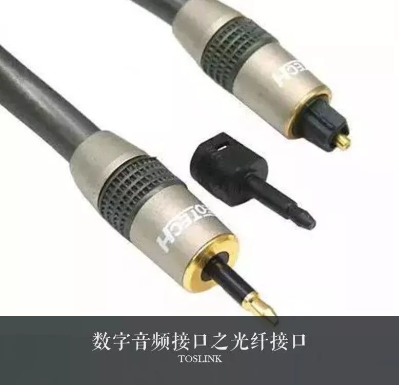 光纖接口的英文名字為TOSLINK,來源于東芝(TOSHIBA)制定的技術標準,器材上一般標為“Optical”。它的物理接口分為兩種類型,一種是標準方頭,另一種是在便攜設備上常見的外觀與3.5mm TRS接頭類似的圓頭。由于它是以光脈沖的形式來傳輸數字信號,因此單從技術角度來說,它是傳輸速度最快的。