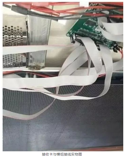 從配電室到LED顯示屏配電柜的電纜在安裝屏幕之前就必須布置好,電源接好后裝控制卡,控制卡這里用的是同步接收卡。整個電源和控制卡的布置,LED顯示屏出廠都是有《電源及系統布線圖》的,只要嚴格參照圖紙走線就不會出錯。一般工程師自己根據電源和卡的數量也可以估算出走線方式。