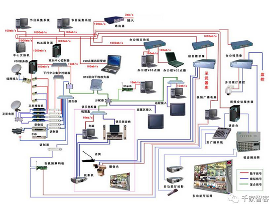 弱電系統是現代建筑物內的綜合系統工程。它與大樓內所有建筑物的機電設備如變配電、空調、照明等設施有密切關系。這些弱電系統有樓宇設備監控系統、安全防范系統、一卡通系統、衛星有線電視及視頻點播系統、結構化綜合布線系統、LED及觸摸屏查詢系統、多功能會議系統、機房、電源、防雷接地系統、背景音樂及廣播系統等。