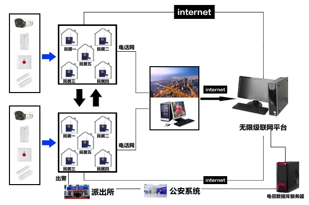 周邊防范:來訪者通過別墅門口機呼叫,業主確認后開門,其他非法入侵都會引起警報(別墅門口機和大門紅外對射關聯,開鎖后撤防,上鎖后,自動布防)。