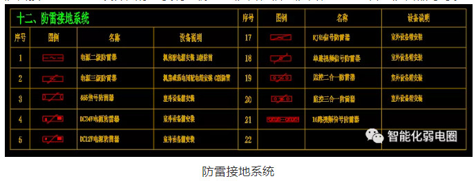 防雷接地系統(tǒng)弱電設(shè)計(jì)圖標(biāo)主要有電源二級(jí)防雷,信號(hào)防雷,監(jiān)控二合一防雷器等等。