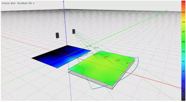 值得一提的是,這次春晚的舞臺是非常干凈的,無論是模擬預測,還是實地測量,都顯示出主擴系統對舞臺是幾乎沒有干擾的,聲壓級小且直達聲少,并且最終的實際聽感,主擴系統對舞臺的不良串音是極其微小的。