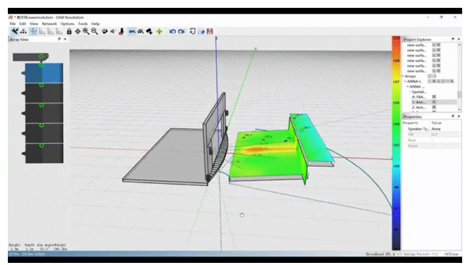 主擴系統采用單側4只Anya自適應揚聲器系統,根據實地的觀眾席尺寸,準確調整其覆蓋范圍。整個觀眾坐席區域內,聲壓級均勻一致,前后SPLA差值不超過±0.5dB,且測量頻響平直一致。真正做到高保真的音質、極強的沖擊感、和連貫的覆蓋,感官體驗極佳。