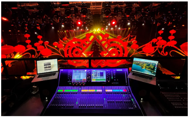系統吊裝位置的選擇,也盡量避開了燈籠對波束的遮擋,穿插在兩只燈籠的間隙處。這樣既滿足了導演對于舞美設計的需求,同時也保證了場地內聲能的有效投射。