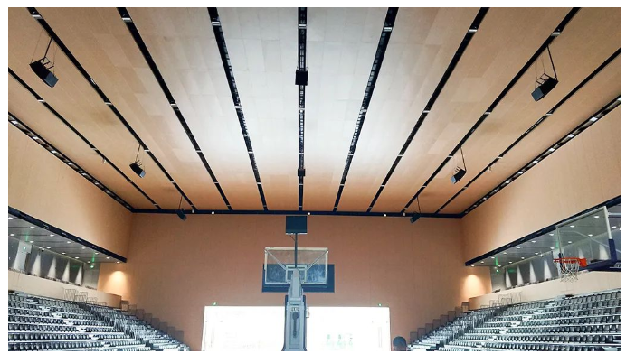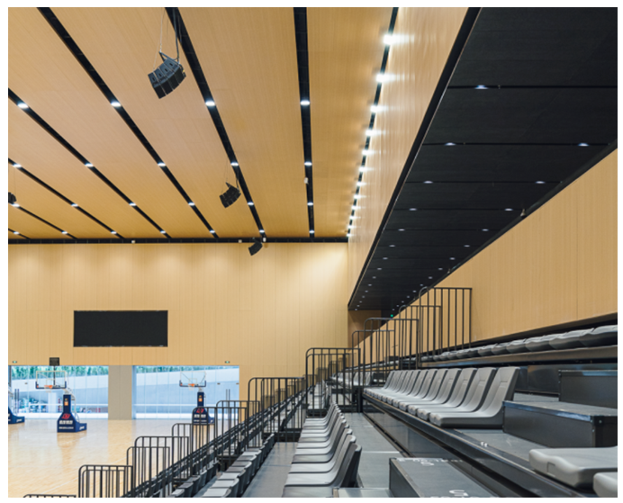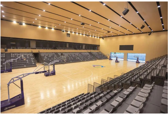 作為城市的文化名片,體育場館一如既往地將城市特色文化、實(shí)用性以及功能性完美的結(jié)合起來。場館在垂直向上進(jìn)行疊加,布置了8大功能場館:游泳館、籃球場、羽毛球館、網(wǎng)球館、乒乓球館、擊劍館以及舞蹈室等多個專業(yè)賽事級別運(yùn)動場地。不僅提供基本體育設(shè)施服務(wù),還能滿足中小型賽事、體育運(yùn)用與文化等多方面需求,同時,簡上體育綜合體在重塑城市精神和社區(qū)生活中扮演重要角色,滿足市民文化體育休閑娛樂健身等各項(xiàng)需求。 其中一層多功能綜合館,面積超過1200平方米,包含2000個坐席和3個籃球全場,可以承辦中小型賽事和活動。在擴(kuò)聲系統(tǒng)的選擇上,面臨著場館層面積大,層高深,混響時間長,設(shè)備選擇需要滿足大聲壓級、高靈敏度、適合長距離投射和體積輕巧能減少高空懸掛的負(fù)荷,確保滿足極佳的指向性控制,保證音色的一致性,具備優(yōu)異的安全性和穩(wěn)定性。