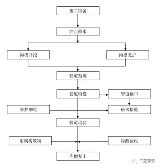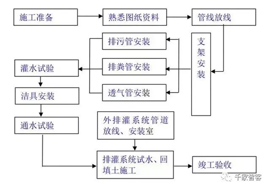 排水系統施工工藝流程圖: