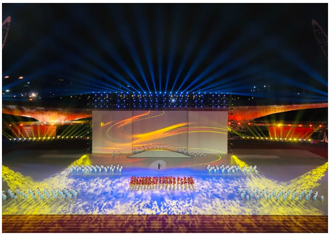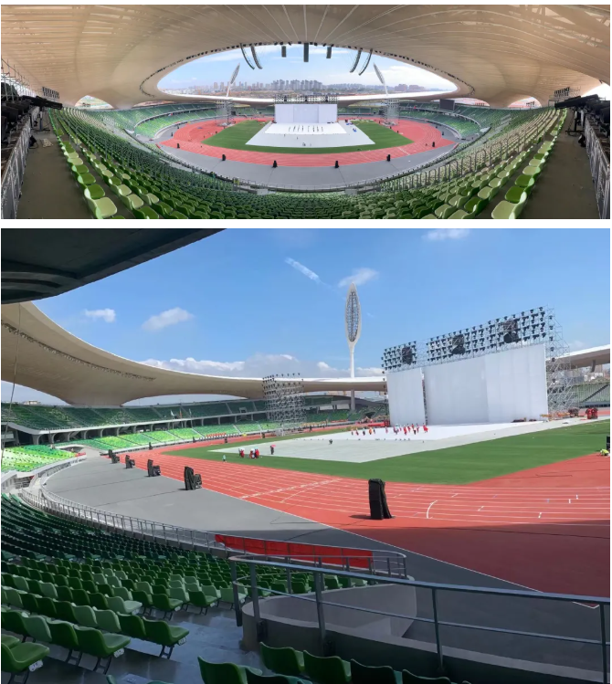 為確保現(xiàn)場(chǎng)最佳的視聽體驗(yàn)效果,本屆體育大會(huì)擴(kuò)聲系統(tǒng)采用源自德國(guó)的EV32只X1I-212/90-FGB垂直線性陣列搭配12只X2-212/120心形指向性超低作為主擴(kuò)組合,16只EVF-2151D垂直線性陣列搭配4只X12-128次低頻音箱及8只EVF-1181S超低音箱作為兩側(cè)補(bǔ)聲組合,主席臺(tái)和演員返聽由8只多功能鏡像全頻揚(yáng)聲器MFX-15MC擔(dān)任,整個(gè)擴(kuò)聲系統(tǒng)由32臺(tái)PX5:4功放進(jìn)行驅(qū)動(dòng)。