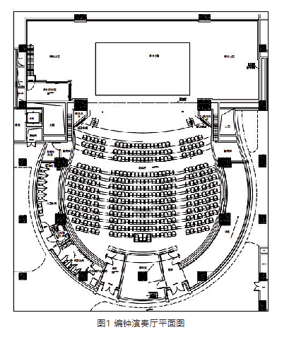 2)不同的音樂演出,音質(zhì)要求有所不同。尤其是編鐘演奏廳這類使用功能單一的廳堂,音質(zhì)設(shè)計(jì)時(shí)應(yīng)充分考慮樂器的發(fā)聲特點(diǎn)。