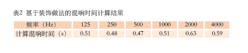 基于裝飾做法,初步計(jì)算的混響時(shí)間如表2所示。從表2可以看出,混響時(shí)間偏低,這會導(dǎo)致音質(zhì)非常干澀,缺乏豐滿度。
